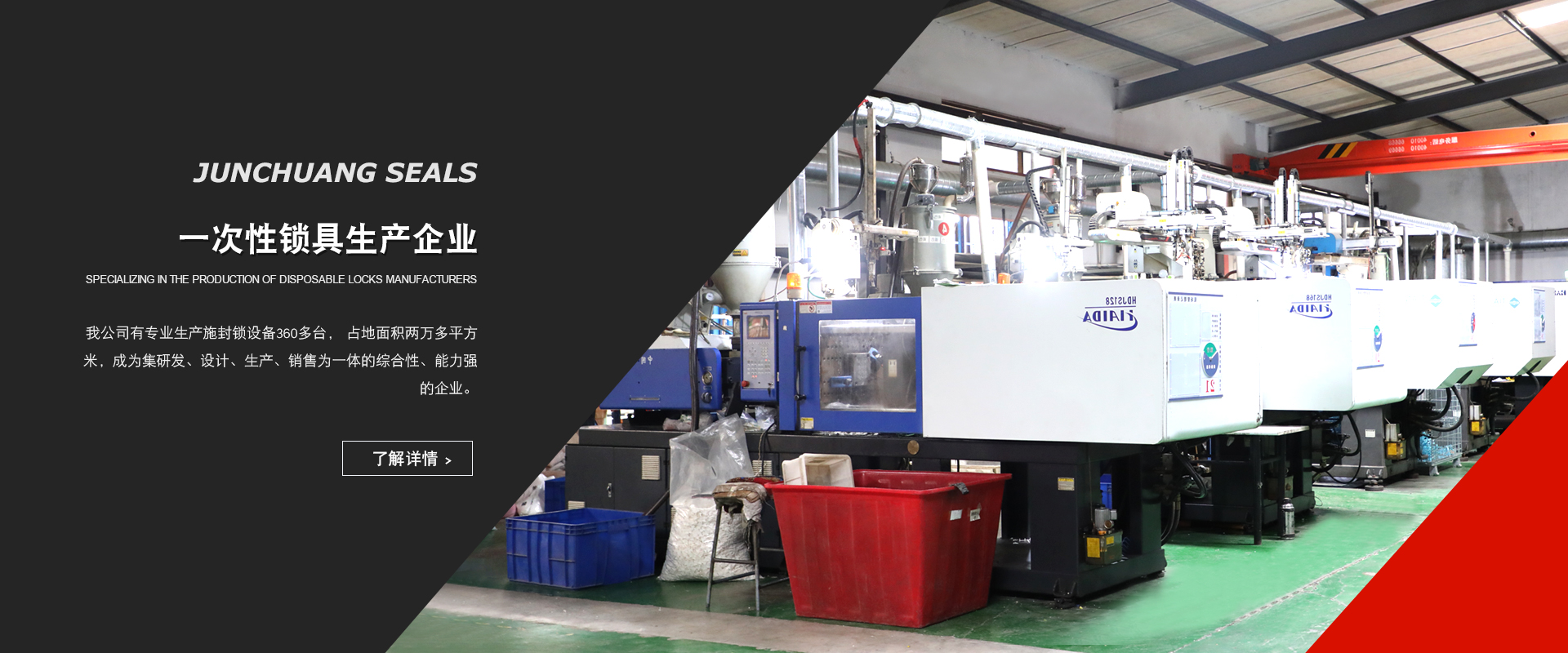 企业自建厂房占地面积二万多平方米,设备460多台,员工300余名,具有高水准的研发团队及高素质的员工队伍。集仪表封条、一次性封条、高保封、电子铅封、塑料扎带、GPS定位封、周转箱等产品的研发、设计、生产、销售为一体。 经过十多年的发展,已成为同行规模与影响力具有高水准的仓储物流终端产品的综合提供企业,企业年产值连续4年2亿元以上。